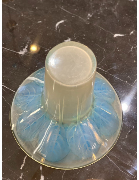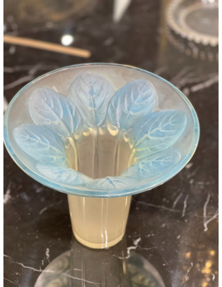 violette opalescente motif feuilles et tiges rebord évasé du vase R.Lalique.
