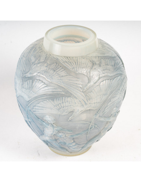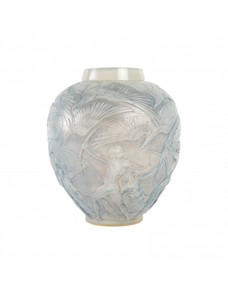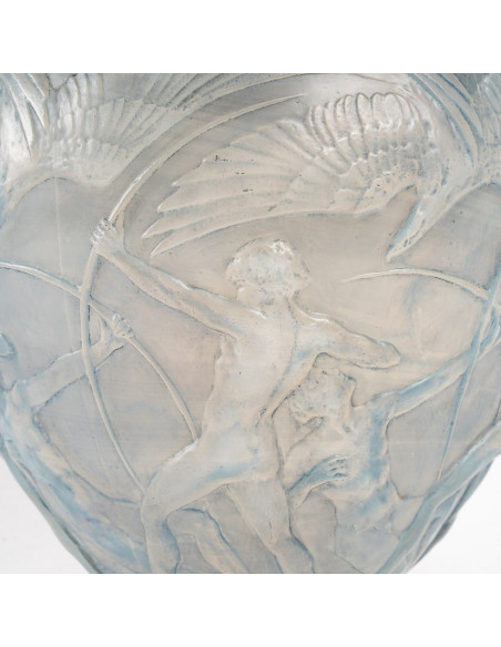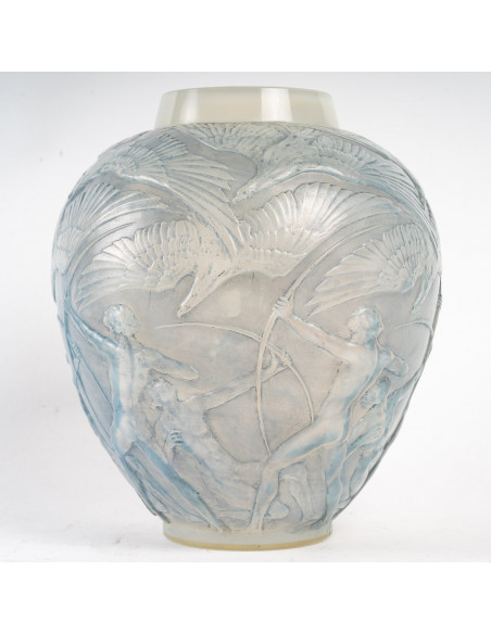 Rene Lalique: Vase à décor d ‘archers nus d'arcs nus visant des flèches sur de grands oiseaux vol.