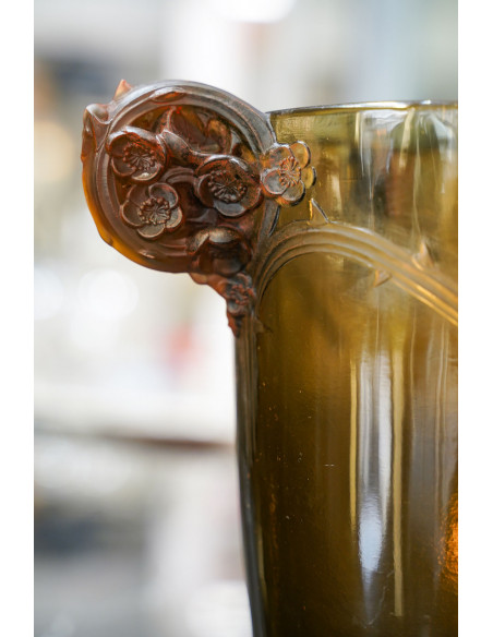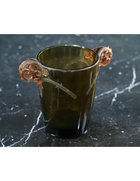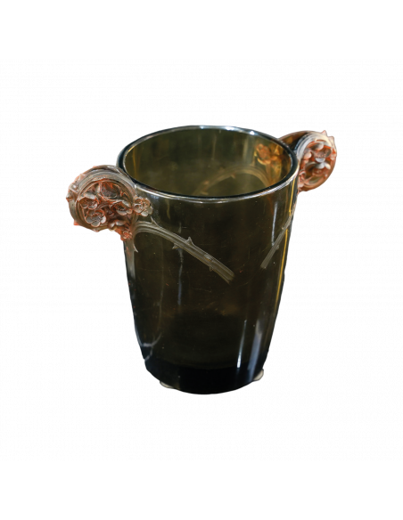 à deux anses en application collées à chaud à décor de fleurs et branchages se prolongeant sur le corps du vase ,