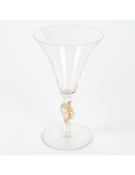 René LALIQUE partie de service MODÈLE BARR. LALIQUE René (1860-1945). Verre blanc soufflé-moulé jambe et bouchon moulé-pressé :