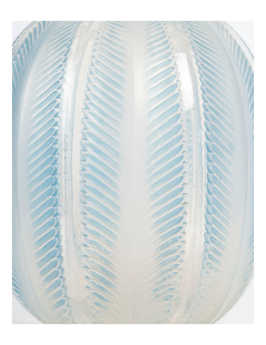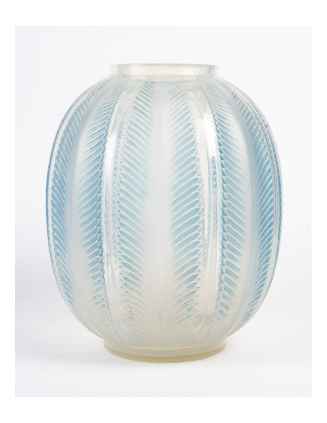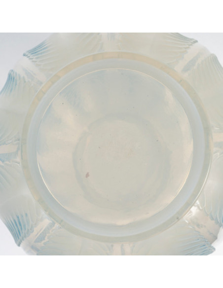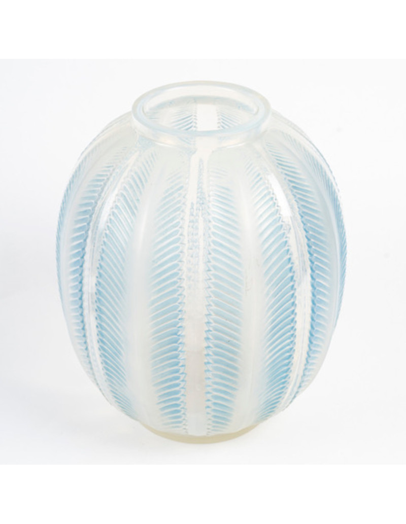 René Lalique - Vase « Biskra » en Verre opalescent et rehaussé avec une Patine bleue.