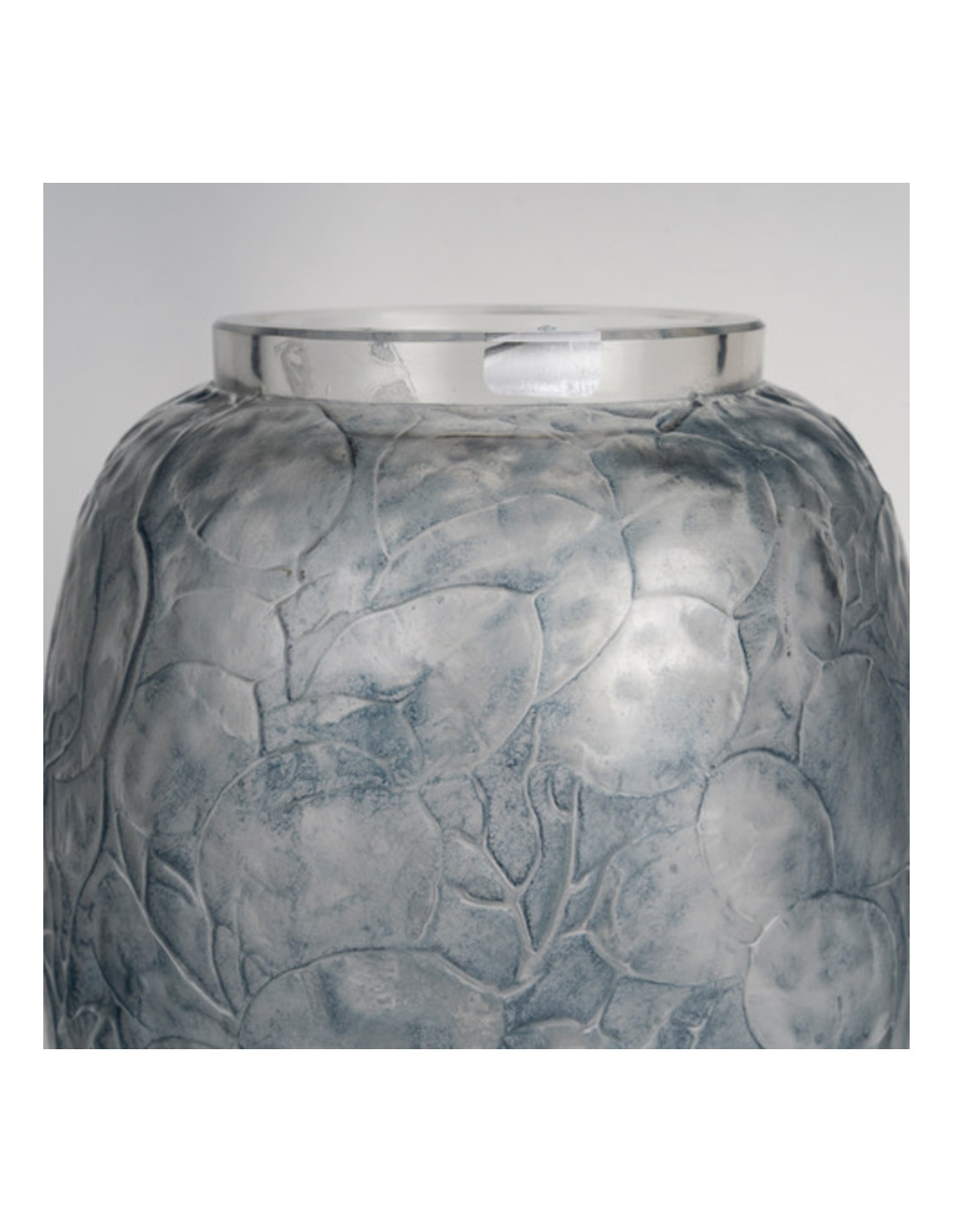 René Lalique : Vase "Monnaie du Pape" verre blanc moulé pressé et rehaussé avec une patine bleu indigo .
