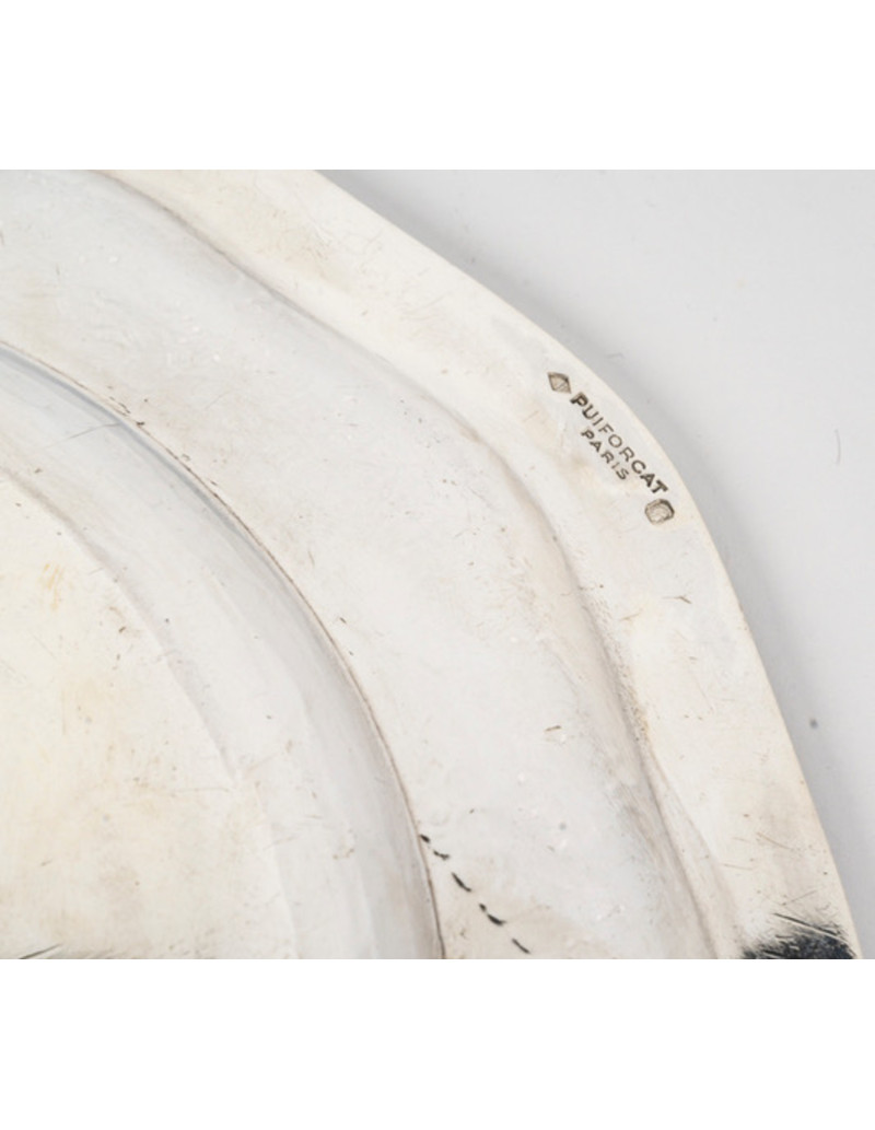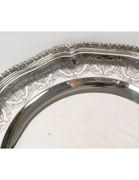 Assiette en Argent massif finement ciselé d’un décor à la Bérain et à décor d oves sur le bord .